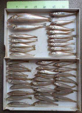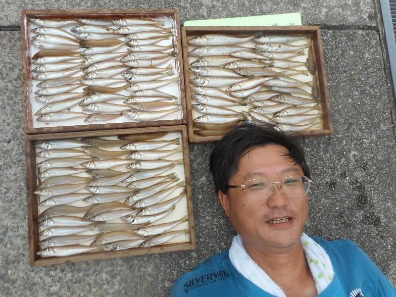 吉川釣具店ですおはようございます。昨日、アップしました滋賀のTさんがビッグなプレゼントをお持込くださいました。何とキスを110匹。サイズも21cmの刺身サイズを筆頭に全て食べごろサイズ。塩焼き、刺身、天ぷら、骨は骨せんべい、卵も集めて天麩羅、更には保存食に目刺し、開き干しにされたと聞いております。体はデカいけどマメな方です。参考まで畑で野菜も作られており、我家のプランターの野菜の育て方の貴重なコメントも頂いております。誤解のない様に書きますがピンギス、他の魚は丁重に扱い、リリースしております。Tさん、暑い中、お持込ありがとうございます。明日は定休日で11時迄の営業とさせていただきます。補)諸般の事情で今後ブログアップはトピックスがある場合を除き、1、2回/週になりますがご理解をお願いいたします。