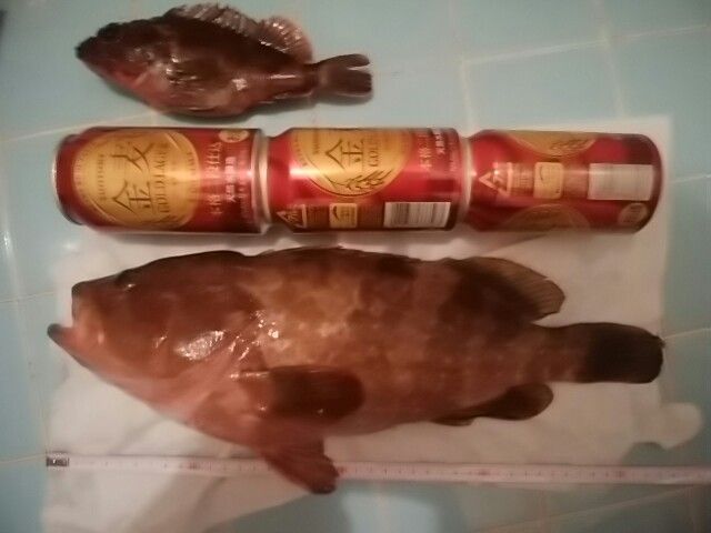 吉川釣具店です12月1日の日記です。昨日、、、、、42cmのアコウが釣れました釣り人は『きんちゃん』昨日、青虫を持参されガシラと共に釣り上げたそうです。玉網を持っていなかったので抜きあげるのに苦労されたと仰ってました。イチかバチか道糸をつかんで抜きあげ、ひざが震えたとの事です。のべ竿5.3m 道糸2号ハリス2号袖バリ9号でした。17:50頃に上がりました。尚、針掛かりが良かったガシラはリリースされました。気温は低くなりましたが海の中は暖かいです。魚との出会いを求めて又の機会にお越しください。