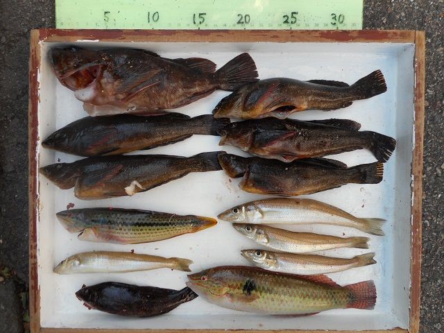 ガシラ(22cm)ベラ(21cm)、アイナメ、クジメ、キス