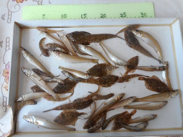キス、ガッチョ、カレイ、ハゼをご自身がチョイ投げで釣り上げました。