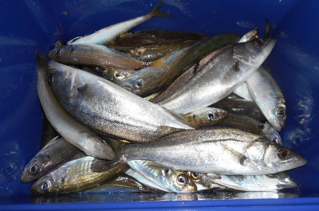 サビキ釣りでご覧の通り、アジとセイゴを釣られました。