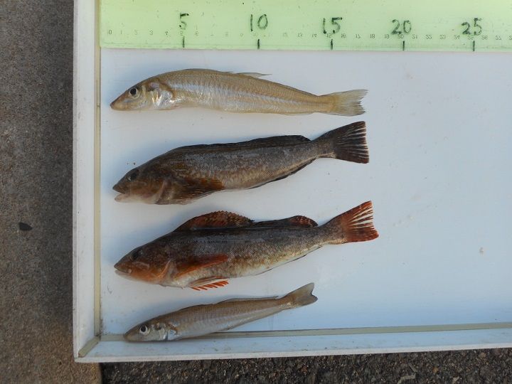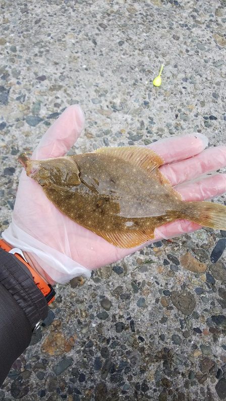 最後の釣果は須磨浦漁港の東側砂浜で15センチのカレイ2匹とキス1匹で