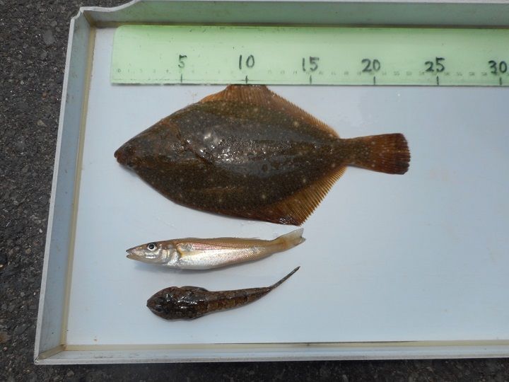 キス狙いでカレイも釣られたのは須磨の坂東様親子。