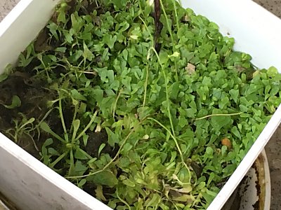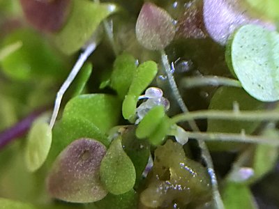 ミミカキグサ系統の食虫植物は用土中の微生物を捕虫し、用土をきれいに保ってくれるので、播き床や、弱い苗などと一緒に入れておくと良いそうです。
