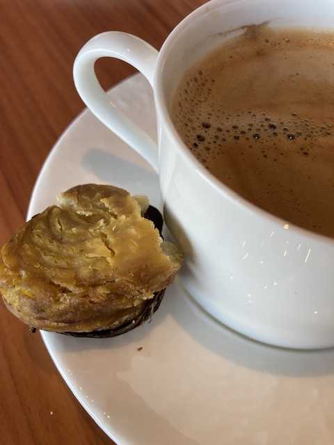 コーヒーの横に載っているのは、ワゴンサービスの焼き栗です。ワゴンサービスは季節によって変わるようで、夏はぶどうのワゴンだったそうです。