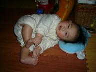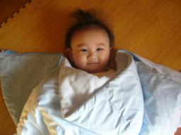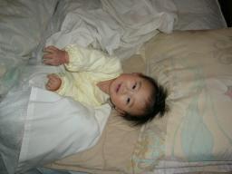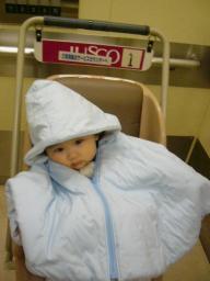日曜日に実家から帰ってきました。北国の人には怒られそうですが、う~ 地元はこっちよりすごく寒い。 風の冷たさが違うよぉ~うちから20kmぐらいしか離れていない同じ県内だけど、以前地元が雪で、旦那の実家は雨だったことがあったほど・・・なんか関節が痛くてだるい。歩くとフラフラする。ここ3.4年熱など出したことない私だけど、これはまさに熱風邪の症状。こんなんで熱なんて自分でもびっくり!!そんな具合悪い私の横で、ハイテンションな我が息子。私は全然眠れないのに、添い乳なしで初めて寝入ったよ。 まじで!? やればできるじゃん。 寒いから帰りたいんだけど、フラフラでハンドル握るのはこわい。新潟から出張で帰ってくる旦那にメ-ルしたところ、ちょうど今新幹線に乗るから、帰り実家に寄ってくれるとのこと。よかったぁ~ 久しぶりに地元の街を散策したかったけれど、今度は暖かくなった春においで~と言われ、実家を後に・・・久々のお熱で家事を忘れ、ゆっくりできる~と思ったけど一晩ぐっすり寝たらすっかり直ってしまいました。たっくは寒くないのか、自分の足で器用に留めてあるボタンをどんどんはずす。ぷくぷくした太ももが丸見え!!どっから足を出しているんだ~ボタンとボタンの間から足が出ていることも・・・留めてははずし~ の繰り返し。またはずしたのね。