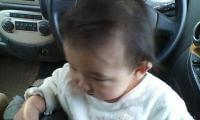 お散歩がてら銀行&朝市に行ってきました。いつになくお外で笑顔ふりまいてごきげんだったので、ちょっと長いしすぎて・・・そうしたら銀行で ヒッ ヒッ としゃっくりはじめちゃって、しゃっくりでちゃったの!?と声かけられるわ、隣の人にじろじろ見られるわで銀行中響いて、ある意味注目の的でした。朝市に行ってもまた同じことを・・・カ-トの中で ヒッ ヒッ とかなり大きく響きわたる。途中おっぱい飲ませて落ち着かせたのになぁ!!通りすがりの人やはり聞こえるわよね。みんな見ていくし、はずかしい。カ-トを押しながら、逃げるように買い物を済ませ帰宅。良く解釈すればあまり余計なもの買わなくていいかも・・・でも帰ってきたらすぐ寝ちゃったよ。