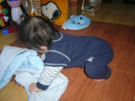 今日はハロ-ワ-ク認定日。絶対行かないわけには行かないので、声が出ないのにいろいろ言われたらどうしよう。とか思いながら、でも胸を張って出掛けてきました。(子育てしながらちょこっと就職活動したしね。)私は母に預けて行ったのですが、赤ちゃん連れの方が他に2人もいましたよ。駐車場がいつも大混雑で一苦労なんだけど、その方はバスで来たとか・・・みんながんばっているんだなぁ~はなみずが乾いて、鼻の中がくもの巣みたいになっているけど、今日も0歳児は元気に遊んでいます。そのパワフルさにママはついていけません。フ-ッ飲み薬はこぼしている量のほうが多いみたい。でも昨日よりは良くなったみたいだけど、ちゃんと効いているのかなっ!?最近変わった動きをし始めました。カエルみたいな格好でピョンと移動したり、ふんばってるみたいにも見えるし・・・(何がしたいのかなっ・・・最近この格好ばかりです。)「ここまでおいで~」と呼んだら、悶えていました。おもしろ~い。がんばっている姿に一人で拍手。(まだ来るわけないね、親ばかでした。) 本日の離乳食野菜ス-プしらす粥