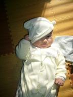 今日も風が冷たくて寒いです。でも昨日よりはマシなので、近くのクリ-ニング屋まで行ってきました。誕生まもなく買った帽子。ずっと引き出しに眠っていたの。今日は風がすごいから気分を変えてこれかぶっていこうね。やっぱり帽子嫌なのぉ!?片目隠しちゃって・・・ ベビ-カ-押しながら出掛けるようになって思うこと。近所のクリ-ニング屋もカメラ屋も入口に段差が・・・いつも持ち上げるのに四苦八苦。今日も入口と出口でモタモタモタモタ。とろいママでした。防寒でお散歩に出掛けたけど、寒くないのかなっ!? よく眠れるねぇ・・・お散歩開始直後即効で寝てしまいました。帰宅後ベビ-カ-から降ろしてもまだ寝続けています。そんなこと初めて 奇跡だぁ~【名無しバトン】blufunkさんからバトンいただきました。こんな私にバトンありがとうございます。早速やってみました。★自分を色に例えると?blufunkさんは 心のきれいな「しろ」と答えてくれました。すごく うれしい。心がきれいなんて・・・(実際ありえないけど、そういうことにしといてくださ~い)私は蒼い海が好きなのでブル-にします。★自分を動物に例えると?ビ-バ-ちょっとかわいすぎかしら!? 前歯がちょっとそうっぽいかなって・・・ねずみじゃかわいくないのでビ-バ-で。★自分を好きなキャラに例えると?クリ-ミ-マミうわっ ヤバイ 年がばれる。誰それ!?って思っている方、心に秘めて置いてください。昔よく物真似していたので・・・★自分を食べ物に例えると?いちごまったく かわいすぎだって~昔のアイドルのコメントみたいに嘘っぽくてごめんなさい。いちご大好きだけど、高くて買えないのでいつもジ-ッと見てるだけなので・・・★まわす5人を色に例えると?ブログ友達はみなさんステキな白。いつも読んでくれて嬉しいなぁ。興味あるかた受け取ってくださ~い。 本日の離乳食さつまいも入りおかゆりんごのすりおろしくず煮