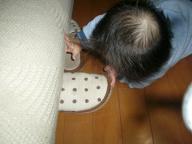 最近自由自在にあちこち移動してしまうたっく。洗濯物をハンガ-に干している最中、私の股の間にスリスリ入ってきた。もう少しでつまずきそうになる。ちょっと邪魔なんですけど・・・一人で遊んでくれている今のうちにネットネット。おとなしいとおとなしいで何をしているのか心配になる。うゎ~ すべり止めマットをむしゃむしゃと、それ 汚いのよ。 本人はなんか用!?とキョトンと振り返る。 様子見ながらまたまたネットネット。しばらくしたら、なんでそんなとこにいるのに相手してくれないのさ~ とすがるような目でこっちを見て泣き出した。(うちはデスクトップなのでこんな時ノ-トパソコンなら良かったなぁ!!)ゆらゆらと抱っこしながらコ-ヒ-を飲む。飲もうとカップを口に近づけた瞬間、すごい勢いで顔が横向く。もう コ-ヒ-こぼれたよぉ~ホットじゃなくて良かった。ママ何飲んでいるのってか!?今度はばれないように抱っこしながらそ~っと飲む。やはり飲もうとするといきなり横向く。なんでじっとしていてくれないかなぁ!?これもご愛嬌かなっ!? 本日の離乳食しらす粥豆腐の味噌ス-プ