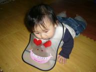ベリベリベリベリー何の音かと思ったら、プレイマットをはずし始めちゃったよ。そんなことも覚えちゃったかぁ・・・やったぁ~と本人はすごく大満足のご様子♪ 今度は、この間購入した歯固めに全然興味を示さず歯固めじゃなくて、歯固めが入っていたプラスチックの入れ物に夢中。そればかりカジカジと・・・おいおい そっちかい!!でも今日やっと歯固めをかじってくれた。よ~し!! その様子を写真に撮ろうっとカメラをむけたら、すごいスピ-ドでカメラめがけて突進してきた。(ずりずり移動が最近早くてパワフル)お前は ”いのしし”かぁ~ 怖いよぉ!! ちょこっと置いたソファ-の上でも寝返りしだしたし、前はコテンと倒れて泣くだけだったのにね。いつの間に・・・ってことが最近多いね。 本日の離乳食りんごヨ-グルト豆腐の味噌ス-プ
