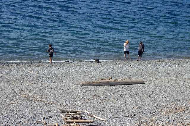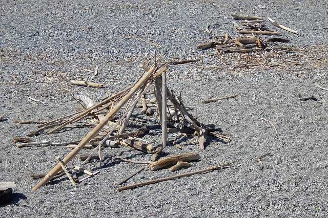 砂浜には打ち上げられた木切れを使いまとめてあります(P)。