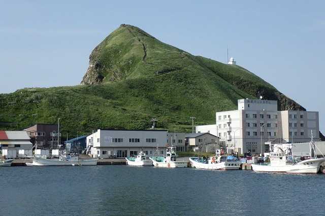 利尻鴛泊港に着き、今夜の宿「利尻グリーンヒルinn」に迎えに来てくれるように電話しました。「前日までに連絡くれないと対応できない」という返事でした。私がなぜだか勘違いをしていて、連絡は当日でないと対応できない、と思い込んでいました。多分、前日より早い連絡では2つの港や飛行場の送迎が煩雑になり間違えたりするからでしょう。そして運がないことには、私以外で礼文島からのこの船で宿に行く人がいなかったのです。距離は2kmくらい、徒歩25分です。歩けない距離ではありません。そして私の荷物はスーツケースではなくザックです。背負って宿まで歩きましょう。失敗をプラスに変え、鴛泊の町を見学しながら「ペシ岬」に寄り、どこか美味しいレストランで夕食を食べ、スーパーでビールやつまみを買って宿に向かいましょう。もちろん、行くには公共バスやタクシーで行く方法もありますが・・・。それじゃあ、つまらないです。時刻はまだ16時過ぎです。まずは、明日登る予定だった港脇にある「ペシ岬」に寄って行きましょう(P)。ペシ岬は港の向こう側にあります(P)。鴛泊港を回り込むようにして行くようです。夕方までの行動が決まりました。頑張って歩きましょう。