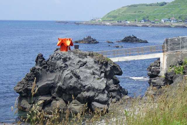 バイクを走らせ利尻島の西側まで来ました。溶岩でできた岩の上に祠が建ち細い橋で行けるようになっています(P)。入口には鳥居があり「龍神の岩」を書かれた説明板があります(P)。利尻島を観光した人のブログにはよくこの神社がアップされています(P)。本当に小さな鳥居と神社ですが、大正時代の出来事から「龍神の岩」が信仰されるようになったようです。海岸にぽつんとあるのが写真映えするのかもしれません。10分ほど走ると「神居海岸パーク」です。看板を見るとウニ剥きやカニ釣りなどいろいろ体験ができる公園のようです(P)。元々は漁師の船揚場だったようです(P)。私も子供の時から焼津という漁師町に住んでいますので見たことがある風景に似ています。そこに体験施設を造り公園にした感じです(2P)。平日のためかシーズンオフなのか少し閑散としています。溶岩でゴツゴツした岩場も見えます(P)。自然がいっぱいの利尻らしい風景ですが、人が見えないのは少しさみしいですね。私の住む焼津でも、もう少し工夫して魅力あるこんな施設を作ったらいいと思います。