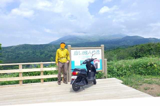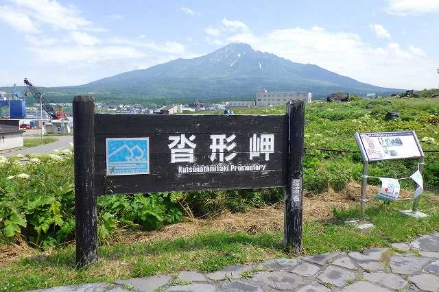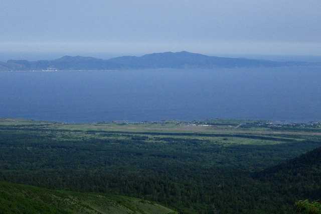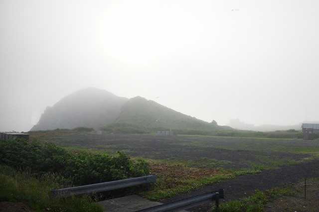 利尻ラーメン「味楽」で昼食を取り12時45分、「見返台園地展望台」に出発です。沓形市街から東に向かって舗装道路をバイクで登っていきます。結構急な坂です。20分弱で駐車場に着きましたが、なんと「展望台改修工事のため立ち入り禁止」の表示とトラロープの通せんぼがあります。草が生い茂り、地味な花が咲いていました(P)。せっかく標高450mまで来たのだからどこが壊れているのか見てみましょう。「見返台園地展望台」がありました(P)。階段の手すりは直した形跡があります。山頂付近に雲がかかった利尻山が見えます(P)。西側には沓形の町と沓形港が見えます(P)。熊笹が生い茂り自然が深いです(P)。「見返台園地展望台」の床の木が朽ちている所がありました。そこの部分だけ換えれば今年の観光シーズンくらい持ちそうですが、大事を取って閉鎖にしたのでしょう。できれば、沓形の町から登ってくる道路に大きく「『見返台園地展望台』修理のため閉鎖中」と書いてほしいものです。私以外にもレンタカーで来ていた観光客もいました。前日利尻山に登ったのですが、当初はこの沓形登山コースで登りたいと考えていました。登山道は途中に崩落している所があり通行禁止になっていて断念しました。さあ、山から海岸道路に下りましょう。
