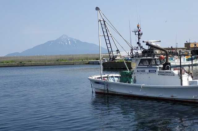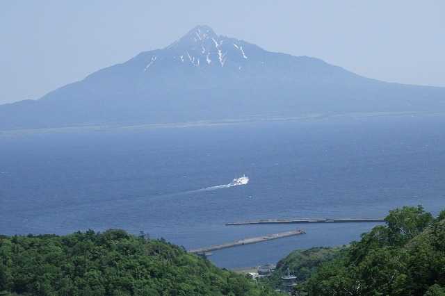 14時過ぎ、香深港に戻って来ました(P)。今日は港の向こうに利尻山が見えます。昨日の朝は同じ場所からこの風景を見たのですが全く違います。利尻山は礼文の漁師にとっても自分の位置を知る目印になる大事な山でしょうね。港のそばには木の昔からの建物もあります。船泊でもそうでしたが、一昨日の夜お世話になった民宿「さざ波」の隣にある「マリンストアー」漁協スーパーマーケットではビールやつまみ、パンなどを買わせていただきました(P)。香深港フェリーターミナルの方へ行ってみましょう。出港1時間少し前ですので利尻鴛泊行きのフェリーはもう着岸しています。フェリーの前半分が見えます(P)。船の真ん中にはターミナルの建物2階から入船できるようになっています。そこに合わせて船を付ける技術はすごいといつも感心してみています。港の反対側に回ってみましょう(P)。先ほどとは違った印象になるのが面白いです。もうレンタルバイクで走りたいところはありません。2日間借り、島内を走りまくったバイクを返却しましょう(P)。実はこのバイクを借りるまでは大変だったのです。旅の半年以上前に計画を立て、レンタルバイク屋「cat rock」に電話しても通じない。礼文役場や観光協会に電話をかけても4月になったら営業を始めるから4月中旬に電話するようにとか言われ、結局連絡がついたのは5月のGW明けでした。30回ほど電話しました。しかもレンタルバイク店は1軒しかなく独占企業ですので1日レンタル4500円、泊まり1000円ということで2日で1万円でした。高すぎませんか?利尻島で借りたガソリン代込み1日3000円とは大違いでした。まあ、楽しい旅ができたので1万円でも安いくらいでしたが。さあ、フェリー乗船の1時間前です。乗船チケットを買い座って休みましょう。旅の記録をまとめたりこれからの計画を見直したりしました。2日間楽しく礼文島巡りができました。利尻島でも利尻山に登って島内をバイクで走り回るという同様な計画です。フェリーの出る30分前、みなさん改札口前に並び始めました(P)。そして乗船し、私は2等椅子席に座りました(P)。窓からは明日登る予定の利尻山がよく見えます(P)。明日の同じような天気だといいです。楽しかった礼文島が遠ざかっていきます(2P)。私だけでなくみなさん名残惜しそうです。旅の思い出を振り返っているのかもしれません。進むにつれて利尻山が近づいてきます(2P)。そしてペシ岬、夕日ヶ丘展望台などが見えてきました(2P)。2003年に日本百名山99座目として稚内港から利尻山の日帰り登山をしたことを懐かしく思い出します(P)。あの時は8月下旬でしたが、今回は6月下旬ですので山の上部には雪が残っています(P)。フェリーは定刻に利尻鴛泊港に着きました(P)。さあ、利尻島での楽しい2日間が始まります。