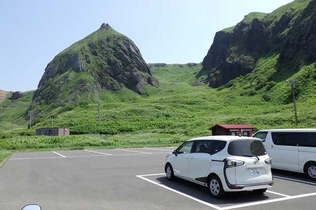 「地蔵岩」を楽しんだ後、ガイドブックの地図を見るとすぐそばに「桃台猫台展望台」があります。ついでですので行ってみましょう。こちらは観光コースには入っていない感じですが、立派な駐車場があります(P)。目の前には桃の形の「桃岩」があります(P)。「桃岩展望台コース」よりこちらの方が桃岩がよく見えます。これは他では見たことがない変わった形の岩です(P)。その先には先ほど行った地蔵岩が見えます(2P)。反対側には学生の時泊まった事がある「桃岩ユースホステル」があります(2P)。かつてこのきちがいYHで楽しい夜や1日ハイキングを楽しみました。YHへは一般車両は進入禁止になっていますので、その道路もYH所有なのでしょう。その先には「猫岩」があります(2P)。猫岩だよ、と言われなければわからないような大きさの岩です。「桃台猫台」も立派な駐車場や展望台を造るほどのものではないと思うのですが、礼文島の自然が素晴らしくここに来たことにより花々や海に出会えるのです。ついでで来たのですが、ここへ来て良かったです。