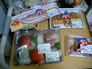 やっぱ、こうなってしまいました・・・(^^;半額の山!!wお刺身にいたりましては、1780円が500円でございます!!w結構多いです(^^;おなかいっぱい・・・ε= o(´~`;)o タベスギー