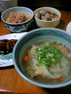 やっぱり、お雑煮で、ござ~すなぁ~♪ってことで、作ってみました!!w昨日のお蕎麦は、あわてて作ったので、関東風、濃い口風味になってしまいましたが、やはり関西人のオイラとしては、お正月は、関西風、薄口ということで・・・wもうちょっと、濃くてもよかったかな??(^^;あとは、定番の数の子、ごぼう巻き、バイ貝??今年も、よろしくです~ヾ(´ー`)ノ