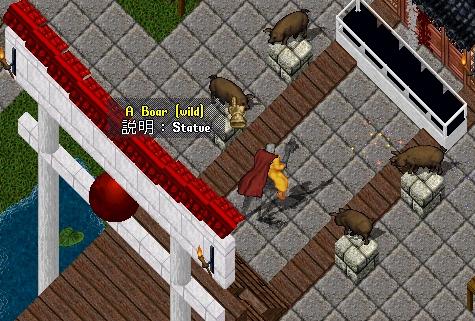 さあ、今年初めてのUO日記ですよ!!(^^今日は豪華二本立てでお送りします(予定)wまず最初は、そう!!お正月の話題と言えばこれ!!初詣!!なにやら、豚さんの置物が、4体置かれていますが・・・なんなんでしょうね??まさか・・・いのしし年だから、いのししの置物置きたかったけど、いのししのグラフィックが無いから、豚さんでごまかしたとか・・・まさかね??天下の、OSI様が、そんな、手抜きなことをするはずが・・・ヾ(;´▽`A``アセアセで、ご神体(?)が置かれている建物へ・・・なんか、自分が、神様になった気分です!!wだれか、拝みにこないかとしばらく待つものの、もう、2日だから、誰も来ないね・・・wまあ、いいか!!wそんなこんなで、UOライフ2007もめでたく始まりました!!ことしも、よろしくお願いします!!ヾ(´ー`)ノ
