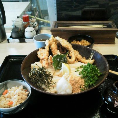 うどん友からお勧めの、深草・手打ちうどん「大河」に行って来ました。http://tabelog.com/kyoto/A2606/A260601/26020260/dtlrvwlst/4587416/注文したのは鳥天ぶっかけの特盛。(通常の2倍の麺)200円プラスで食べられ超お得。麺はコシがあり出汁も抜群に美味でした。流石に本場「池上」で修行しただけの事はある。愛想も非常にいいお店です。近くにお越しの際は是非是非行ってみて下さい。