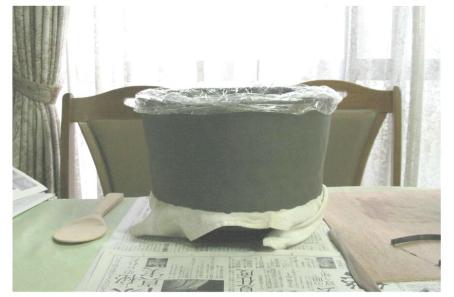 ハイキングの予定だったけど 雨降りでやんす。朝の天気予報で 「3時ごろまで雨」とでたので あたしは行くのをやめた。だけど ひょっとすると…みなさんは「小雨決行」ということで 出発したかもしれない。1日ポカンと空いたので 「陶芸デー」ということにした。粘土がたまっているのです。これを消費しなくちゃ~!!冬から春にかけて 絵に忙しかったせいか陶芸窯が故障したせいか…とにかく 粘土がたまりました。計ってみたら 18kgもあった、ヤバッ何を作ろうかと考えた。家で使えて・・・・粘土をどっさり使うような物・・・・という条件で 『傘たて』を作ることにした。ただいま制作途中でして、下のほうが少し固くなるまで待っている。どんどん積むと 粘土の重みで 下がぐにゃ~と曲がるといけないからです。