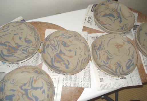 来週は陶芸クラブがあるので何か作るべえということでお皿を作ることにした。白い粘土に青と茶を混ぜてマーブル模様に挑戦だ。けっこうキレイに出た。 ふちをまだ整えていない。半乾きくらいでやらないと・・・あんまり高度な、プロみたいな出来をのぞまないで楽しく笑って作る方がいいんじゃないかな。というのが今日のキモチです。もうひとつ 大どんぶりも作った。球を半分に切ったような形なので底が丸いです。3つ足を付けるべきだけど、このままにしてドーナツ型の座布団にのせよっと。