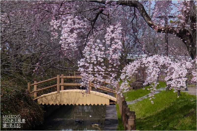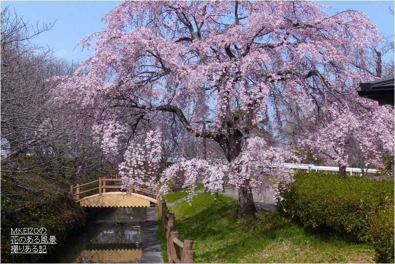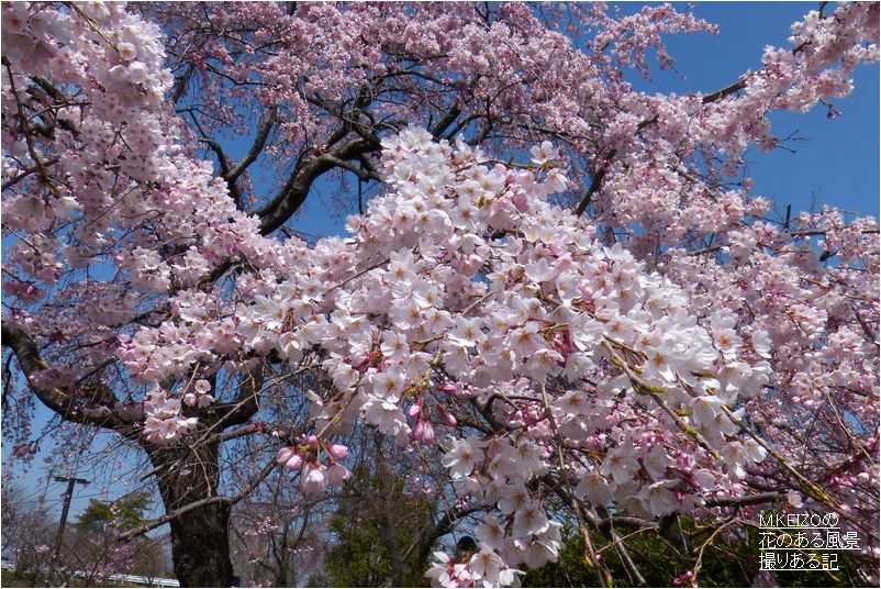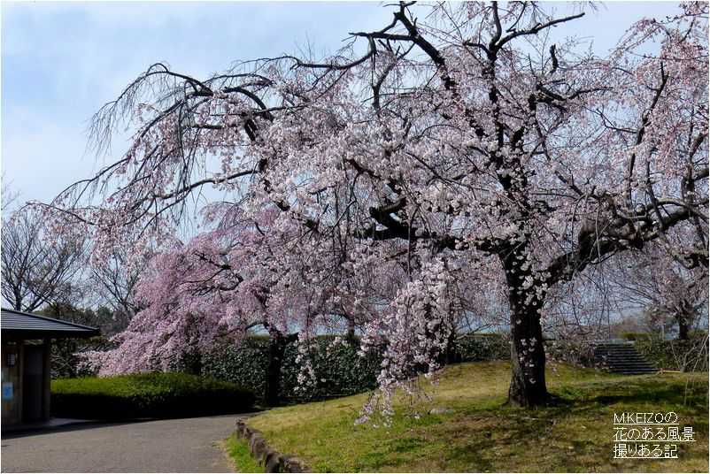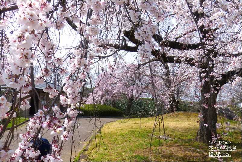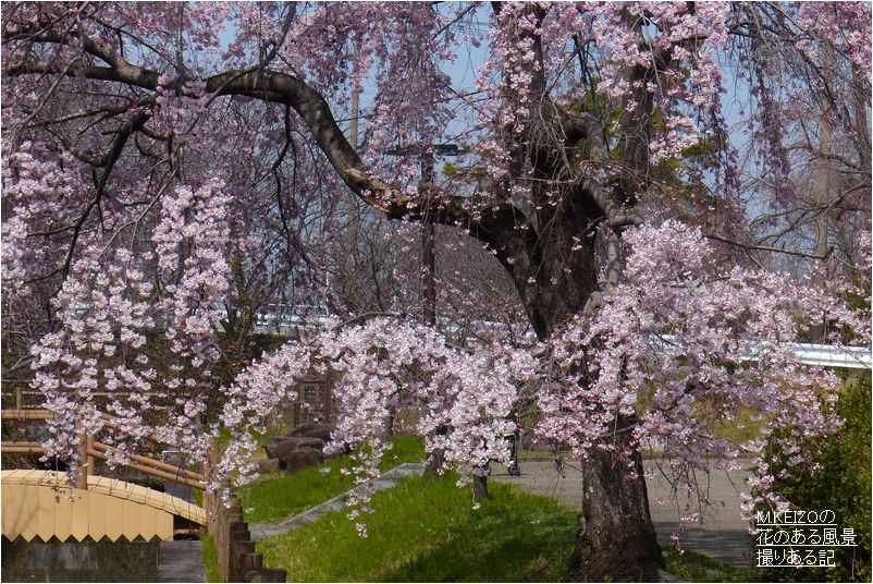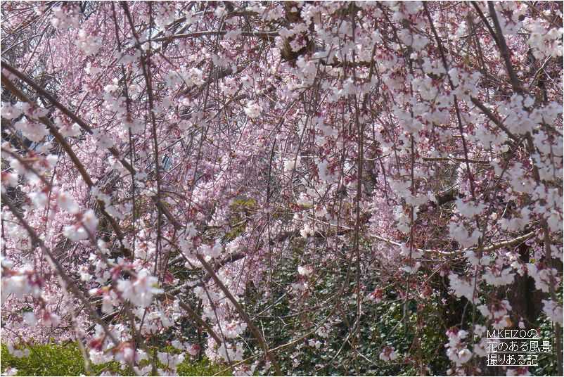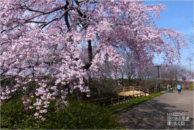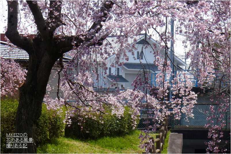 染井吉野の開花が始まる頃「桜ネックレス」の小公園の祇園枝垂れ桜の孫桜が見頃を迎えます。見事に満開を迎えていました。