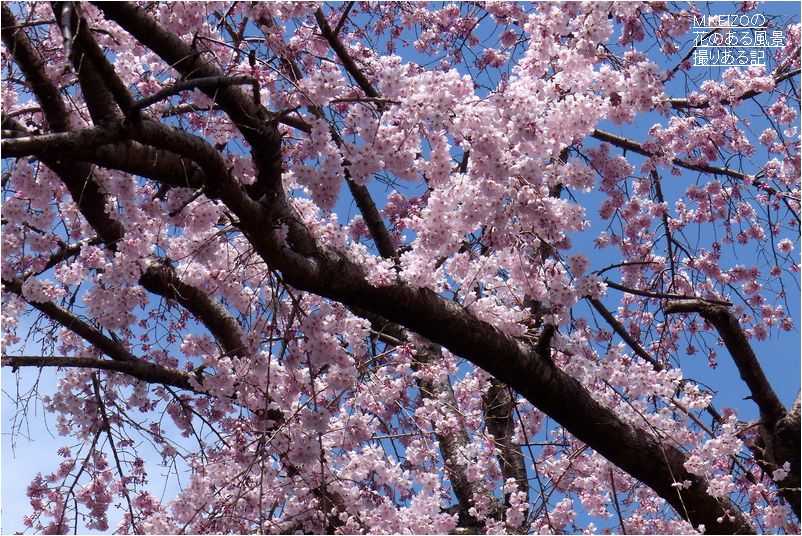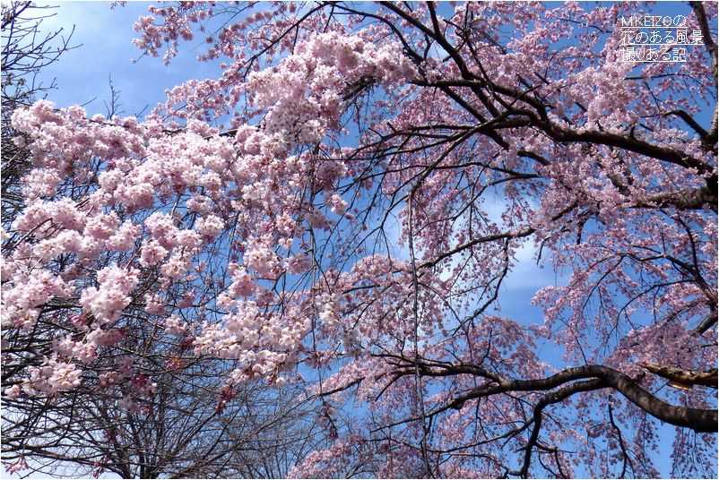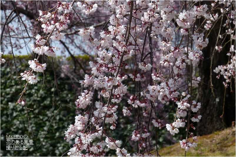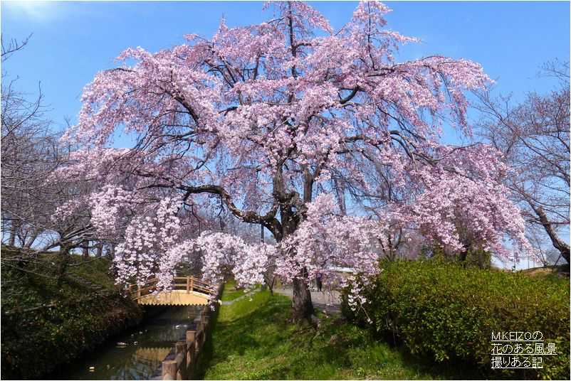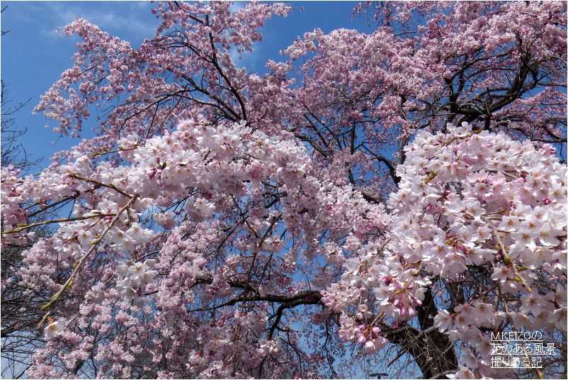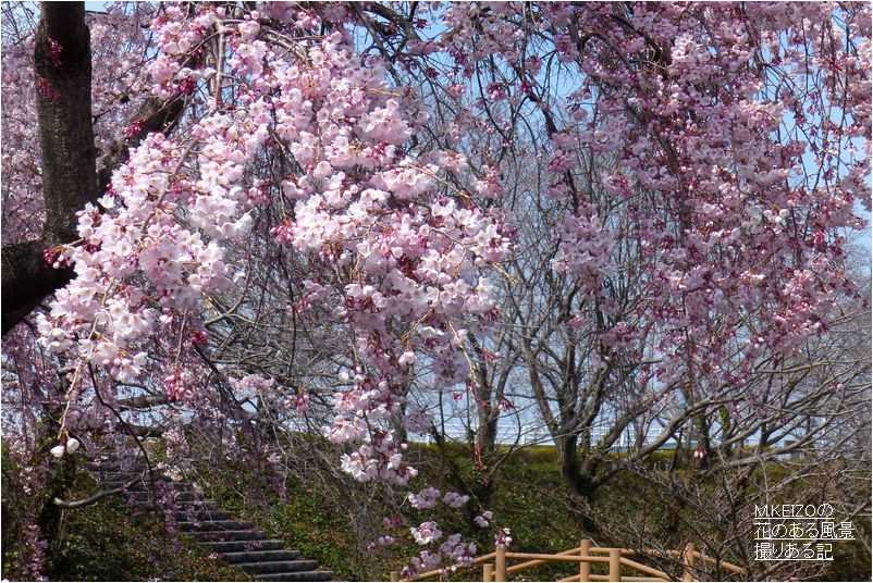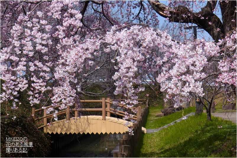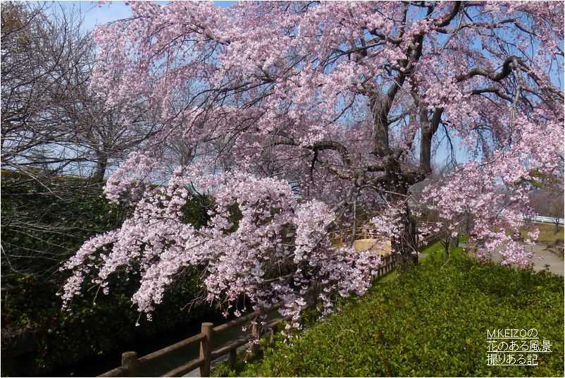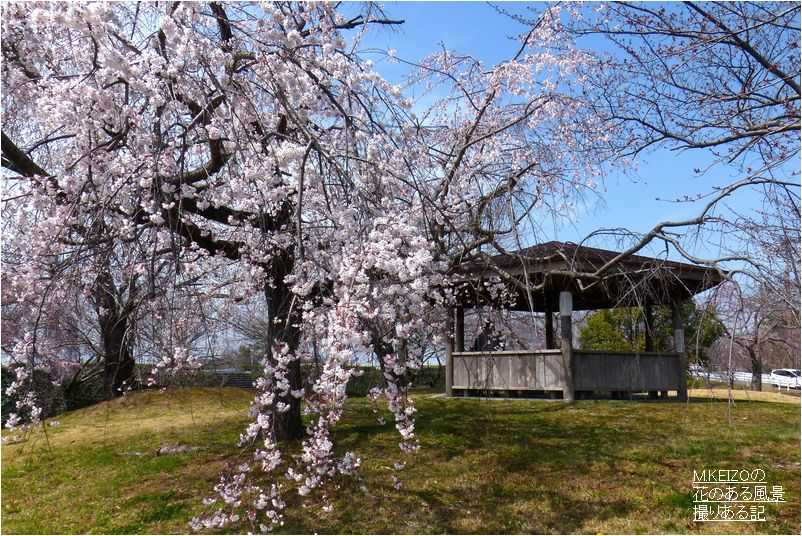 染井吉野の開花が始まる頃「桜ネックレス」の小公園の祇園枝垂れ桜の孫桜が見頃を迎えます。見事に満開を迎えていました。