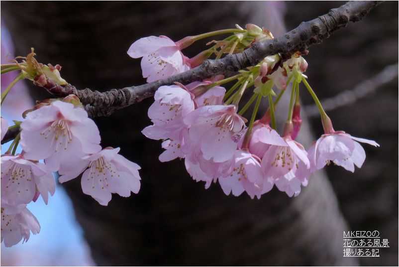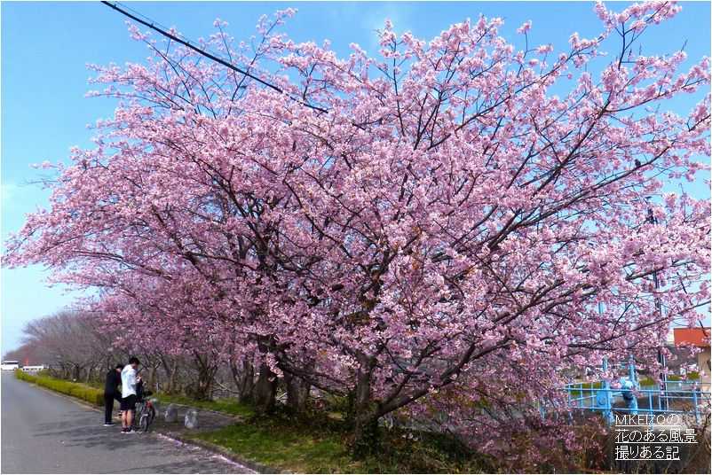 (27)小公園に近い日光川桜づつみ南端の「大寒桜」が最も早く満開を迎えます。