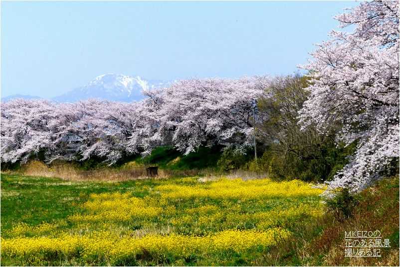 (1)菜の花と桜の上に、珍しくこの日は伊吹山が望めました。