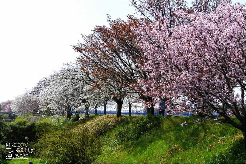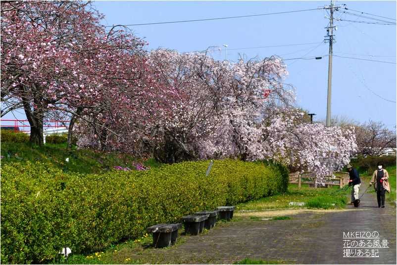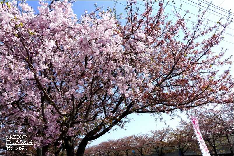 桜ネックレスを繋ぐ最後の日光川桜づつみのサトザクラ群の桜並木が見頃になってきました・・・