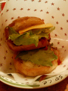 昨日、友だち4人でハンバーガーを食べに行ってきた天気も良く、楽しいドライブ日和~♪ちょうどお昼頃、お目当てのお店に着いたが・・・意外に車が並んでいない(と言っても、店の前に4~5台は並んでいる)ので、お店のお勧めハンバーガーを注文して車内で待つ事にした。「店内でも食べれます」という張り紙を見つけ、車を移動させてお店の中に入ったら小さい喫茶店と言った感じで、かわいいお店だった。飲み物を頼んで待つ事しばし・・・デッカなハンバーガーが4つ登場!!携帯で記念撮影(笑)いざ食べてみたら、すごくジューシーでボリュームがあって、レタスなどの野菜が味を和らげている感じで、コッテリはしていないし、とっても美味しかった~(^~^)「ハシゴしよう!」と意気込んでいったのに、あまりにも大きかったので普通のハンバーガーにしとけばよかったとチョット後悔^^;美味しかったので満足^^そのあと神社へお参りに。藤で有名な神社らしく、藤の花言葉が『縁結び』と言う事らしく、そっち方面で有名のようだ。ようやく探しあてて行ってみたら、おじさんがお払いを受けてる最中だったので、お賽銭を入れてお参りした後、その向きのおみくじをしたら【大吉】だった~O(≧▽≦)O 括り付けない方が言いと言う事だったので、財布に入れた♪良い事ありますように~(^人^) その後行く当てがなかったので、動植物園に行った。途中のハンバーガー屋は行列・路駐してある車が目立った。園に着いたが、山手の方だからか風が強く、しかも冷たい!!園内を一回りして退散(笑)その後、某旅館の温泉に行き、浴室と天上露天風呂を堪能して帰ってきた♪とろとろのお湯で滑りそうだったけど、湯上りもスベスベ~♪帰り運転しなくて良かったが、寝そうだった(笑)上下挟んでも、一口じゃパンしかかじれません(笑)