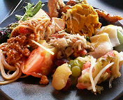 昨日は吐麗さんともう1人友だちと3人でディナーバイキングに行ってきました複合施設に入っているお店で、本店は広島だったかな?予約をしていたので、窓際の席が用意してありましたぁ港と海・山が一面に見えて、夕日もあたってすっごく綺麗でした時間が経つにつれて、夜景がと~っても綺麗でした食事も種類が豊富で、地産地消っていうんですっけ?地元の食材を使った料理があったり、ソフトドリンク・お茶も種類が豊富でした洋食もチラホラあったけど、和食がメインでヘルシーな感じで、たらふく食べましたかぼちゃのスープ、めっちゃ美味しくって二杯も飲んじゃいました^^フルーツとソフトクリームはあったけど、スイーツがなかったのがちょっと残念だったかなぁ。その代わり「温かいぜんざい」があって、美味しかったですちなみに吐麗さんは、アルコール三昧でした(笑)最初からこんなにテンコ盛りにとってきました♪10品はあるかな?!