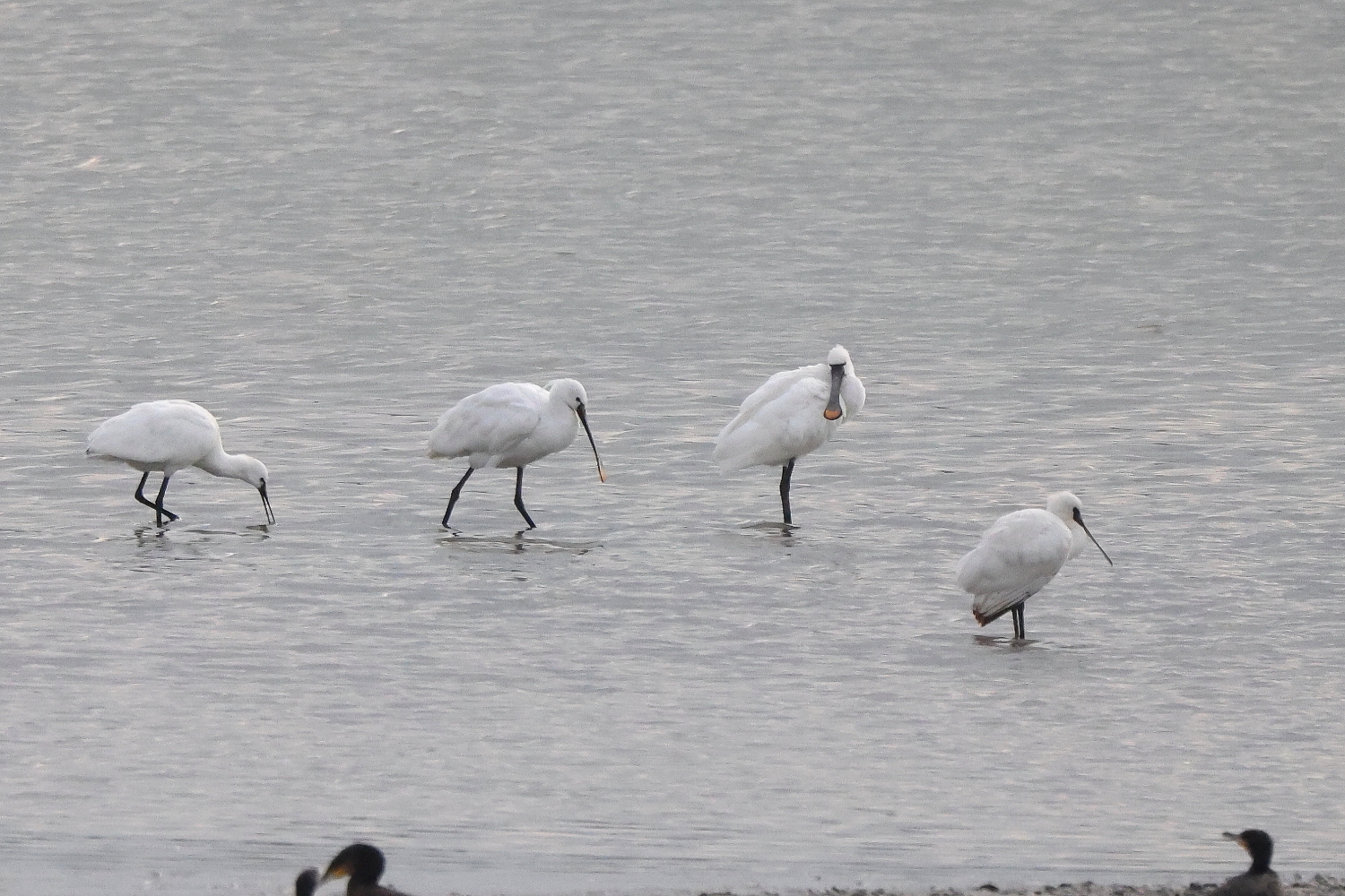 (本日更新2)岸和田の大池で、今季なかなか出会えなかった超珍鳥のクロツラヘラサギが珍鳥のヘラサギ6羽に混じっていましたが、肝心のクロツラヘラサギは殆ど動いてくれませんでした(^^;)※Canon EOS R5+RF100-500mm F4.5-7.1 L IS +1.4x 手持ち撮影☆岸和田の大池で出会えた超珍鳥「クロツラヘラサギ(黒面箆鷺)」と珍鳥「ヘラサギ(箆鷺)」 【クロツラヘラサギ(黒面箆鷺):ペリカン目トキ科 TL 70-80cm 】 <英名:Black-faced spoonbill> 【ヘラサギ(箆鷺):ペリカン目トキ科 TL 85cm 】 <英名:White Spoonbill,Eurasian Spoonbill>クロツラヘラサギ1羽・ヘラサギ3羽(1)058A4485クロツラヘラサギ1羽・ヘラサギ6羽(2)058A4332クロツラヘラサギ1羽・ヘラサギ6羽(3)058A4466クロツラヘラサギ1羽・ヘラサギ6羽(4)058A4477