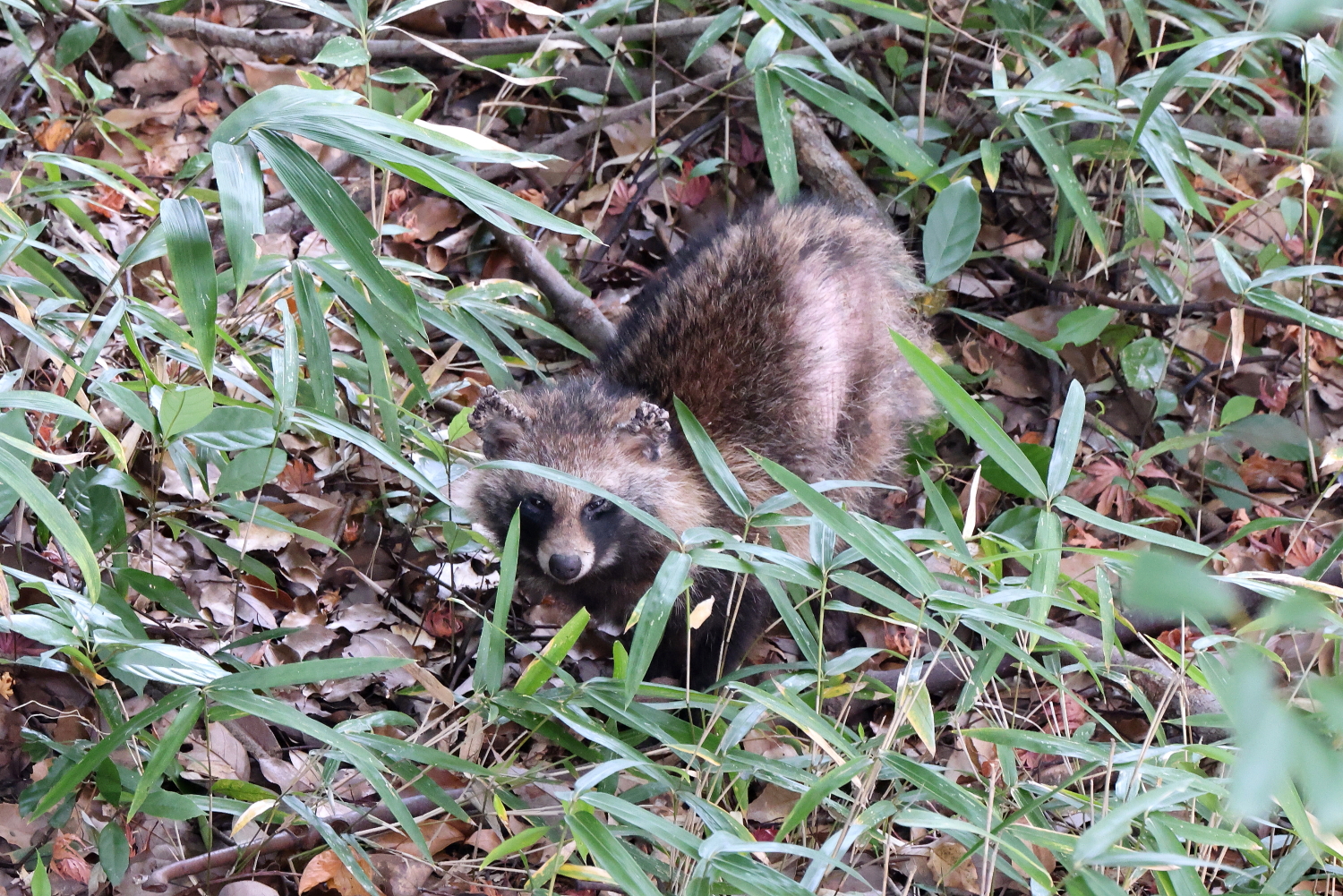 近所の大池の森で、落ち葉を踏む足音がするので、よく探して観ると「タヌキ」でした(^-^)このタヌキの両耳には、可愛そうにいっぱいダニがくっついていました(^^;)※Canon EOS R5+RF100-500mm F4.5-7.1 L IS USM+1.4x 手持ち撮影☆近所の大池の森で出会った「タヌキ」 【タヌキ(狸):ネコ目イヌ科タヌキ属 体長50-60cm 】タヌキ(1)058A4236タヌキ(2)058A4239タヌキ(3)058A4241タヌキ(4)058A4245