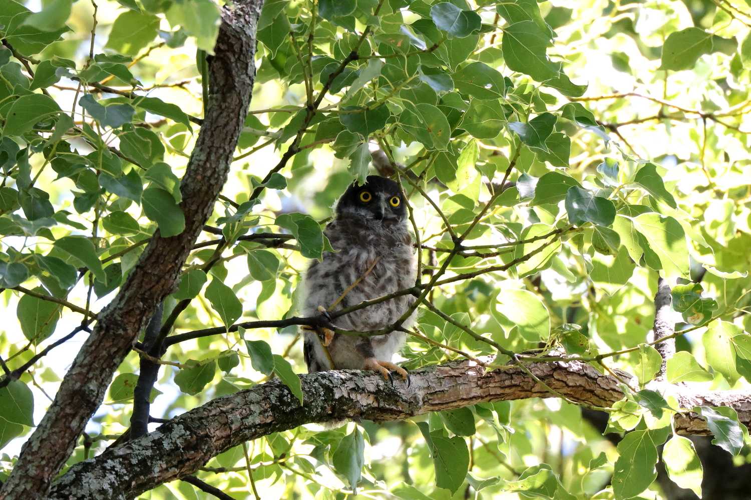 (本日更新1)大阪南の鎮守の杜で、「アオバズク幼鳥」2羽が巣立っていると聞いたので、様子を観に行ったところ、昨日朝は、幼鳥が3羽になっていました(^-^)朝に巣立ったと思われる3番子は、少し離れたところで、こちらを向いて留まっていましたが、あとの2羽は茂みの中で後ろ向きだったので、3羽揃っては撮れませんでした(^^;)近くで、親鳥が見守っていました。※Canon EOS R5+RF100-500mm F4.5-7.1L IS +1.4x 三脚撮影※Canon PowerShot SX60 HS 手持ち撮影(ふうさん)☆大阪南の鎮守の杜で巣立った「アオバズク幼鳥3羽と親鳥」 【アオバズク(青葉木菟):フクロウ目フクロウ科 TL 27-30.5cm 】 <英名:Brown hawk owl>アオバズク幼鳥(1)058A1316アオバズク幼鳥(2)058A1342アオバズク幼鳥(3)058A1349アオバズク幼鳥(4)IMG_9751 by ふうさんアオバズク幼鳥(5)IMG_9768 by ふうさんアオバズク親鳥 058A1327