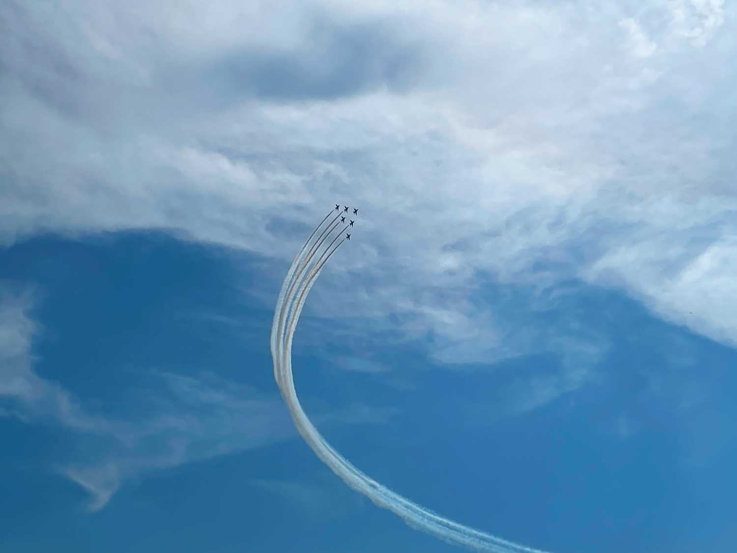 (本日更新3)地元大阪で開催されている大阪・関西万博に、鶴見緑地の花博以来35年ぶりにやってきたブルーインパルス(動画含む)です(^-^)色んな模様を描いてくれるのですが、風が強くて直ぐに飛ばされてしまいました(^^;)※iphone 12 で撮影☆大阪・関西万博のために35年ぶりに大阪にやって来た「ブルーインパルス」 動画1(ハート形)はこちらから⇒https://youtu.be/9X_ZJ7OfHQk 動画2(8の字形)はこちらから⇒https://youtu.be/eOVc09SMt90 動画3(扇形)はこちらから⇒https://youtu.be/8Z_OmGkX7iEブルーインパルス(1)IMG_0619 by ふうさんブルーインパルス(2)IMG_6037ブルーインパルス(3)IMG_6039ブルーインパルス(4)IMG_6044ブルーインパルス(5)IMG_6063