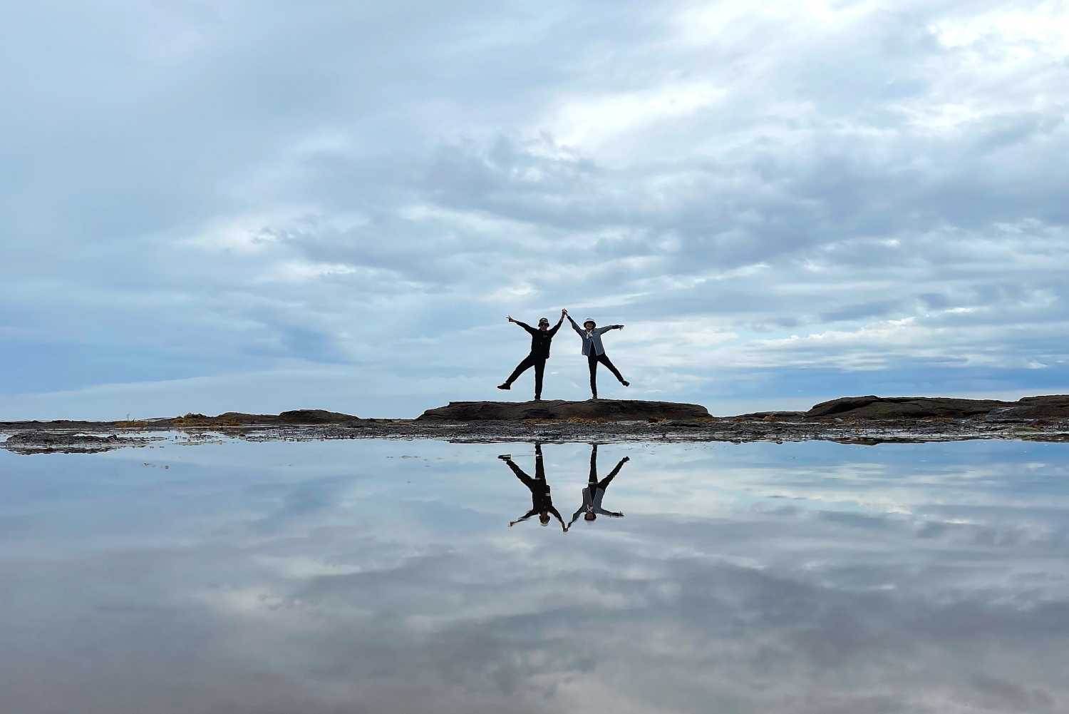 (本日更新2)和歌山県の天神崎で、ボリビアのウユニ塩湖のような、水面を鏡にしたような幻想的な景色が見られる(写真が撮れる)というので、5月下旬にパンダにお別れに行く途中に立ち寄ってみると、地元の親切なカメラマンに、ふうさんとポーズをとってたくさん撮って貰えたので、その軌跡的な写真のパート2です(^-^)干潮で夕日をバックにが理想的ですが、残念ながら雨上がりの曇り空でした(^^;)※iphone 12 (地元のカメラマン撮影)☆和歌山天神崎で水面を鏡に撮って貰えた「奇跡的な写真」天神崎での軌跡の写真(1)天神崎での軌跡の写真(2)天神崎での軌跡の写真(3)天神崎での軌跡の写真(4)天神崎での軌跡の写真(5)天神崎での軌跡の写真(6)