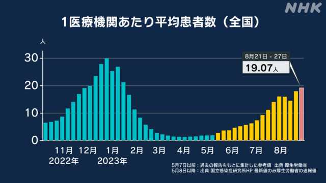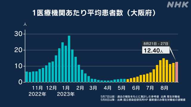 地元大阪府で先週1週間に報告された新型コロナウイルスの定点医療機関あたりの患者数の増加傾向は、少し落ち着いてきたようですが、また増加傾向に転じています。