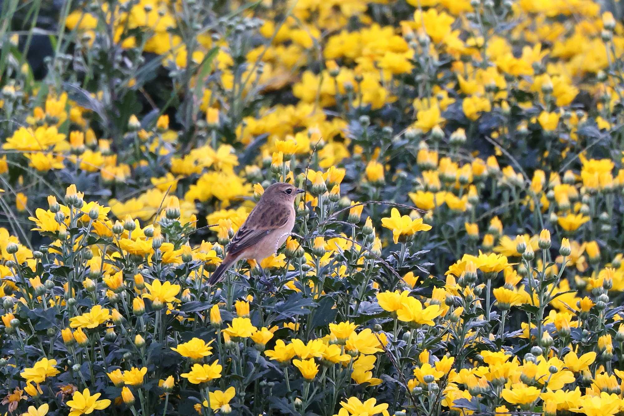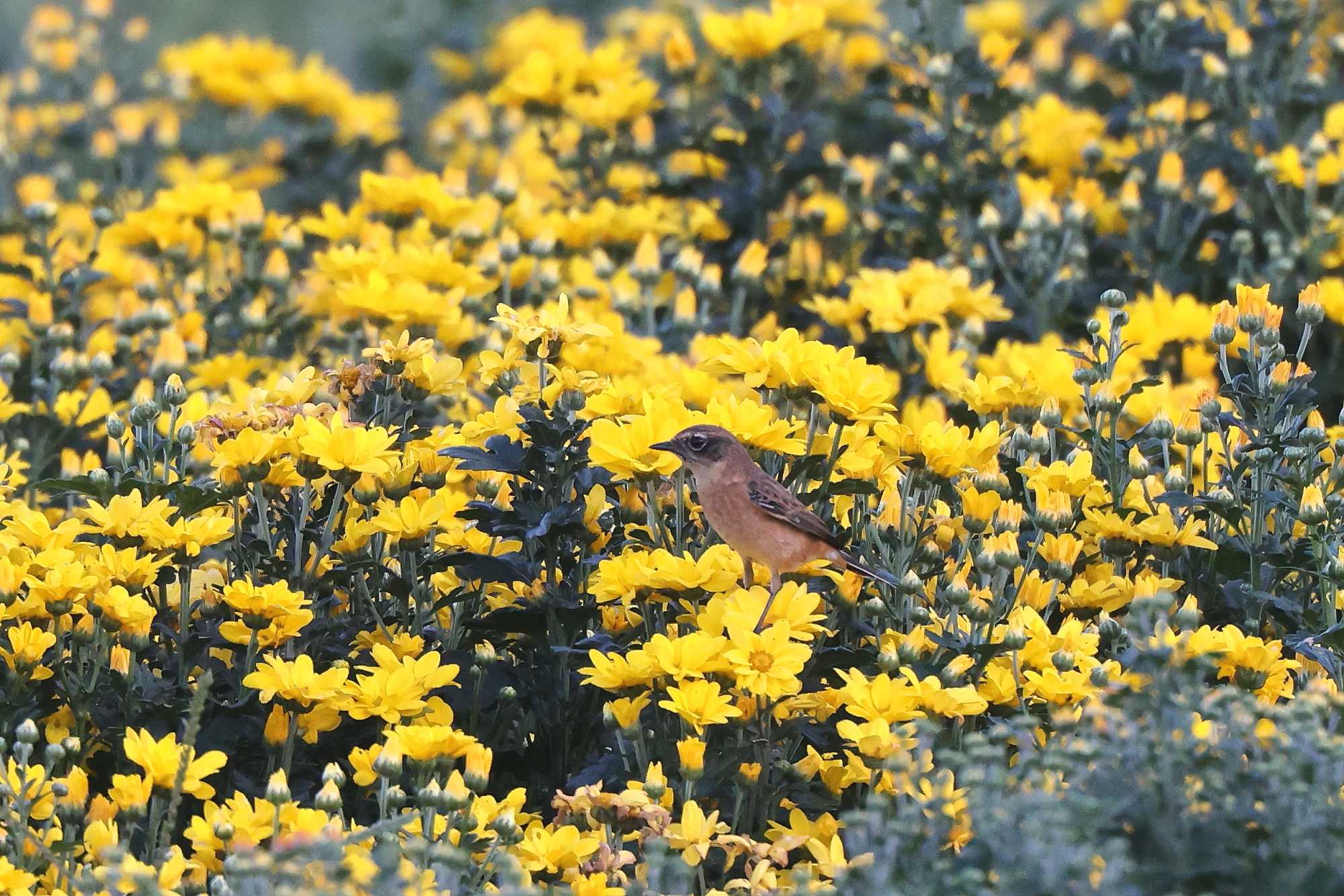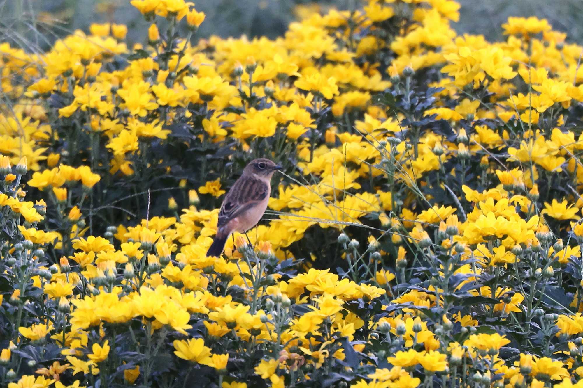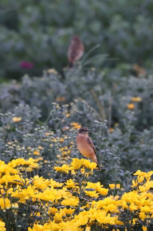 (本日更新2)生駒山麓の菊畑で、先日の夕刻前にやっと撮影できた「菊ノビタキ」(パート2)です(^-^)