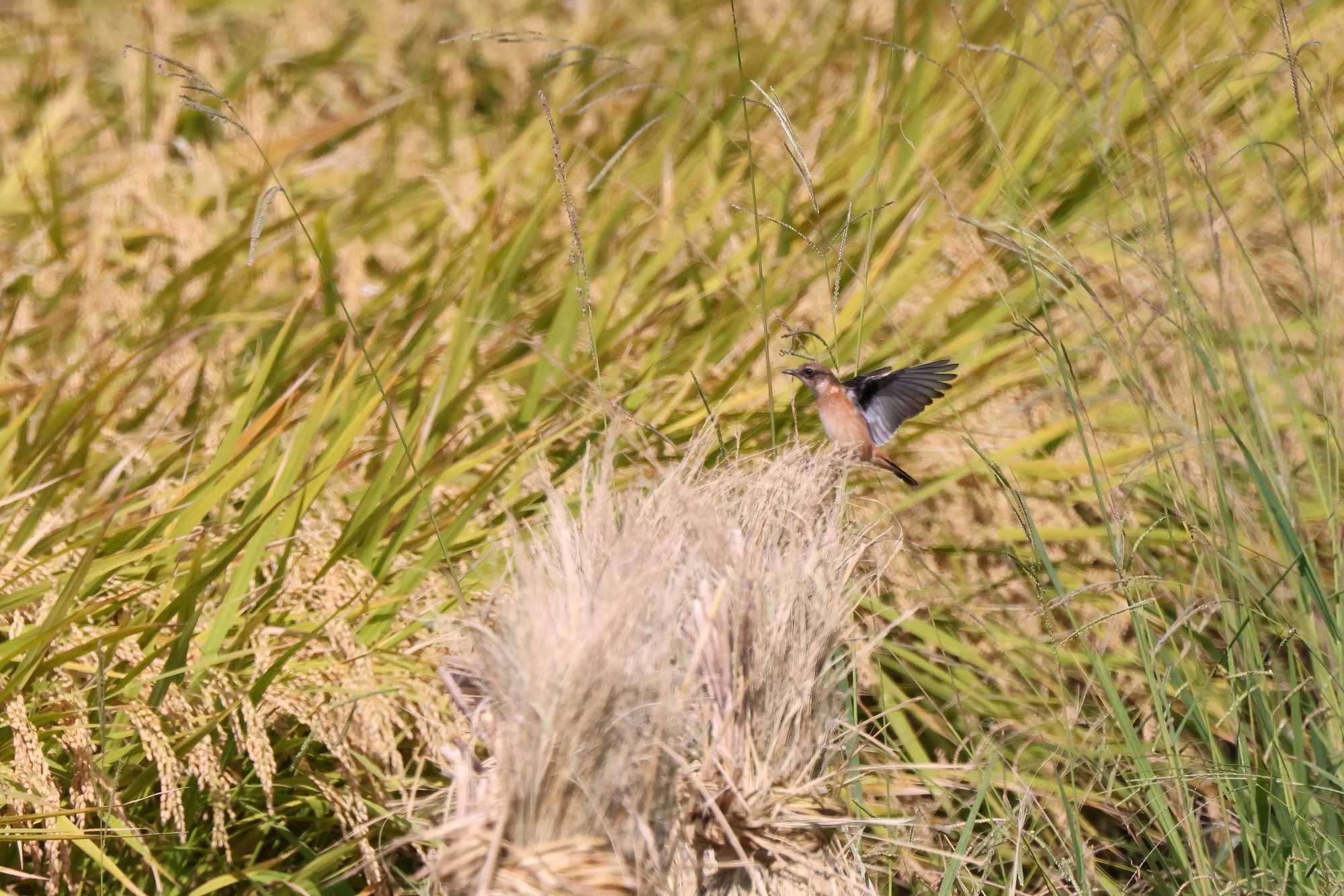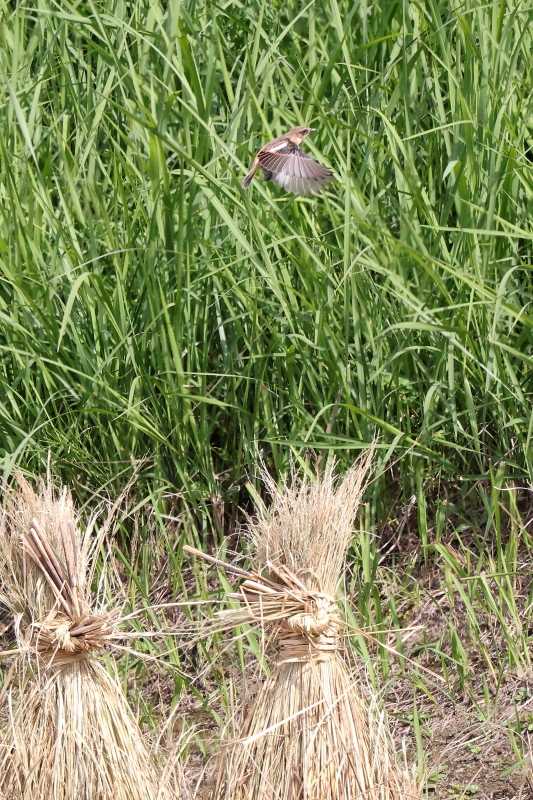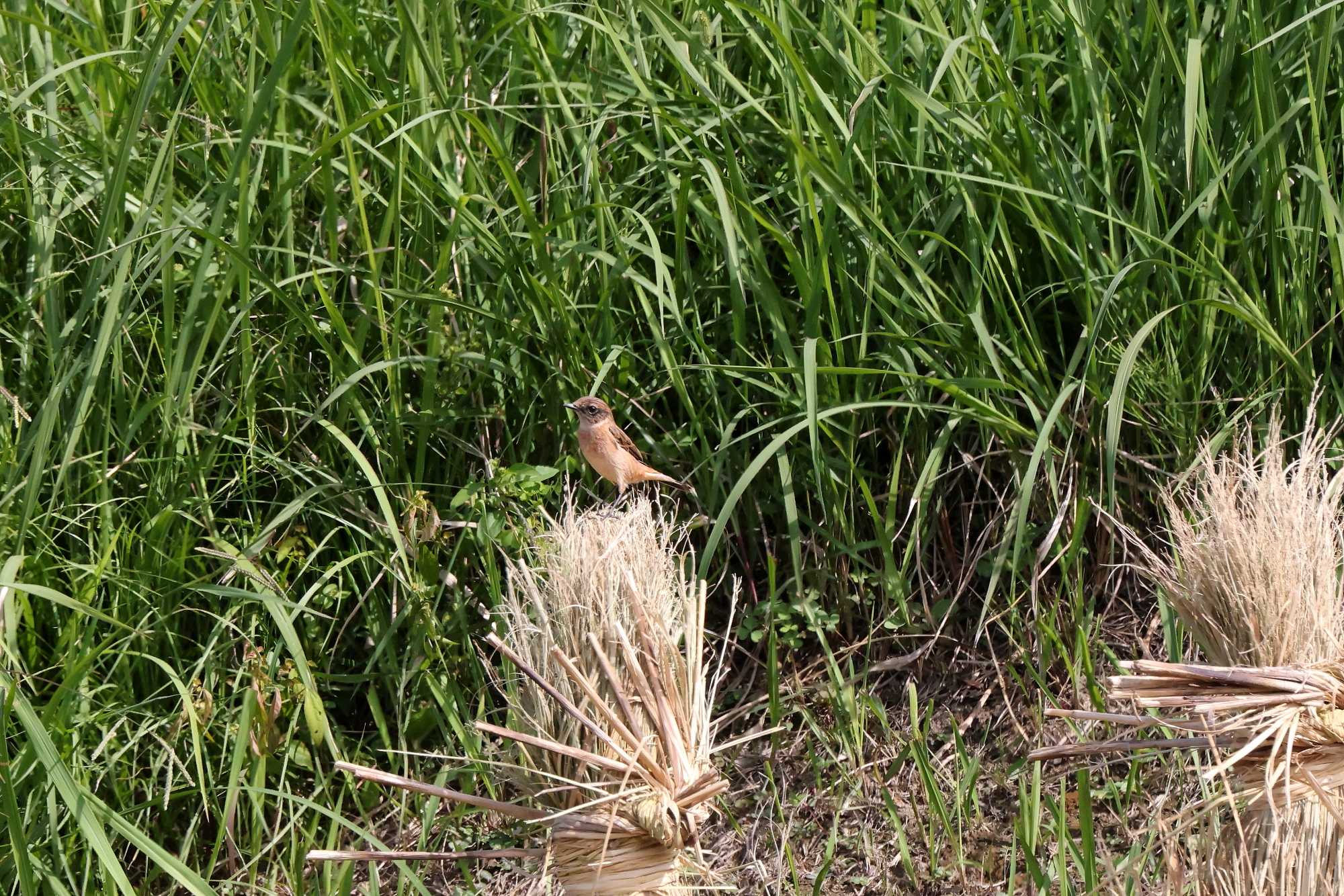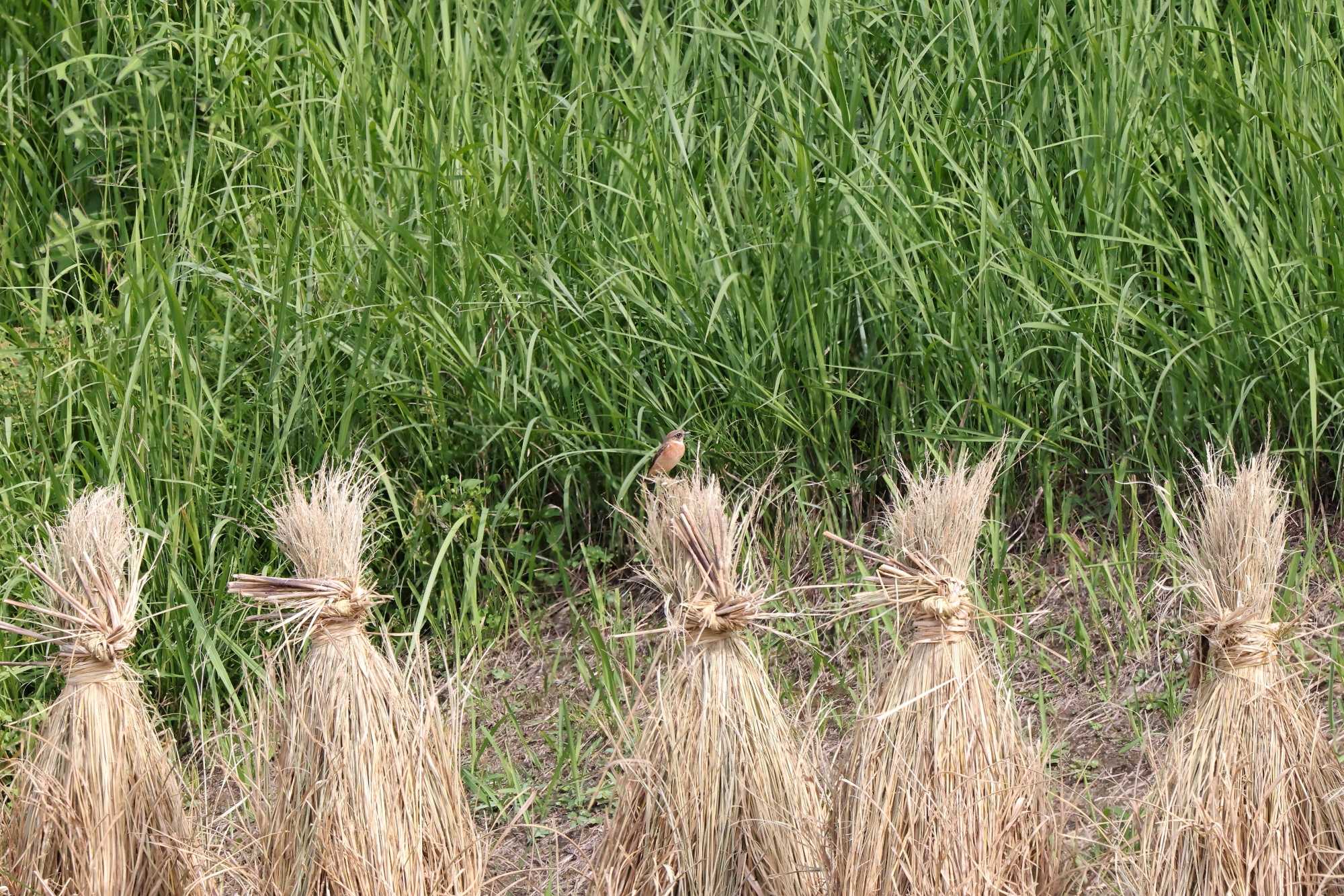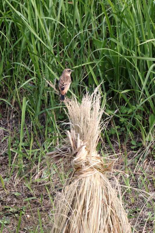 ☆堺市の田園地帯でうまく藁ぼっちに留ってくれた「藁ぼっちノビタキ」