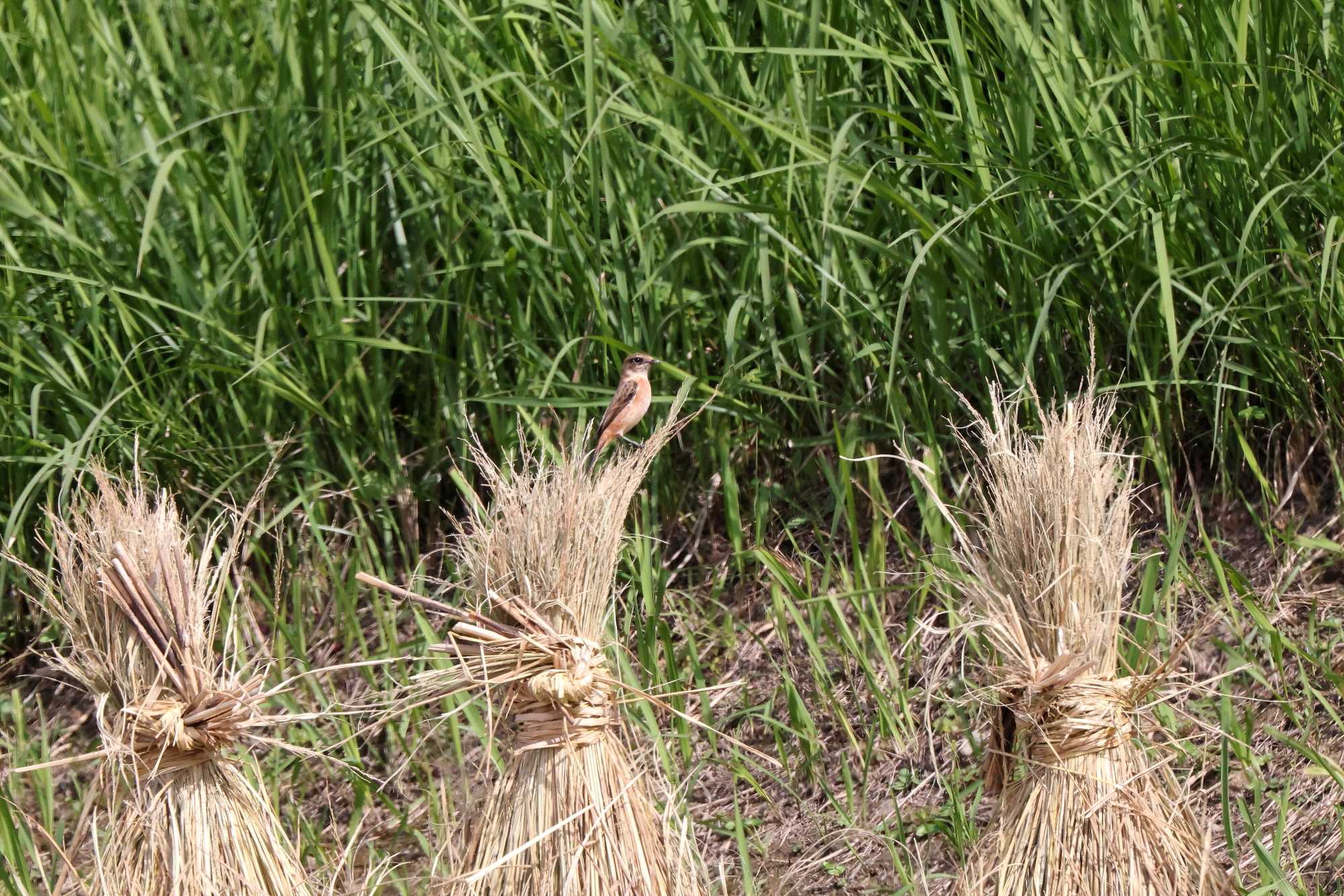 (本日更新2)堺市の田園地帯で、田園風景に溶け込んだ「ノビタキ」を撮影したいと探していたところ、1羽だけしか居ませんでしたが、うまく「藁ぼっちにノビタキ」が留ってくれました(^-^)