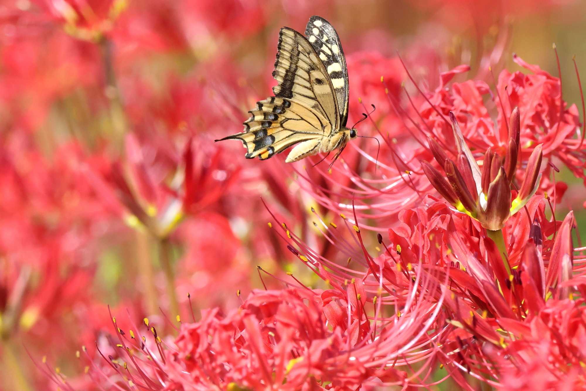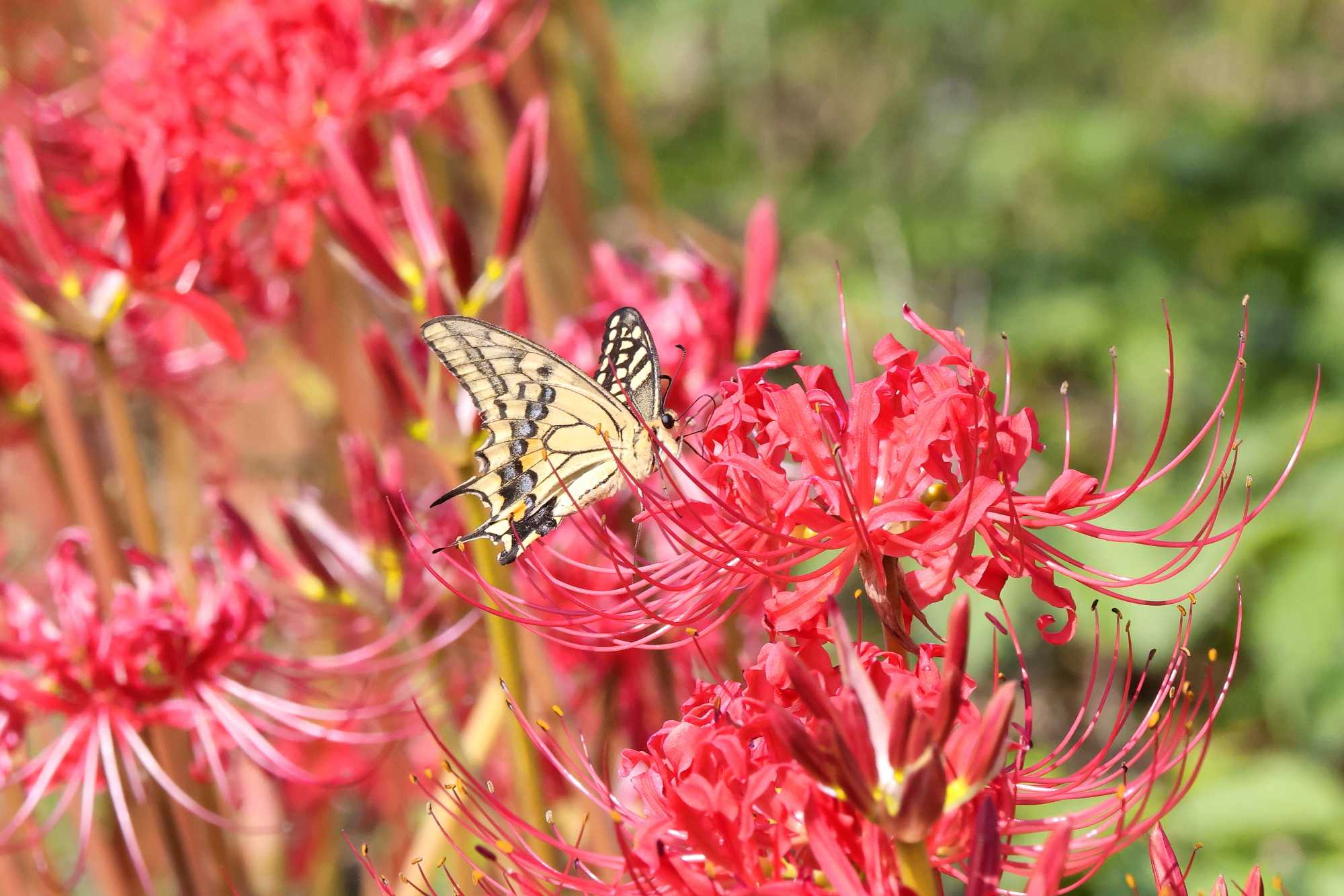 ☆堺市の田園地帯で彼岸花の吸蜜にやって来た「アゲハチョウとキアゲハ」