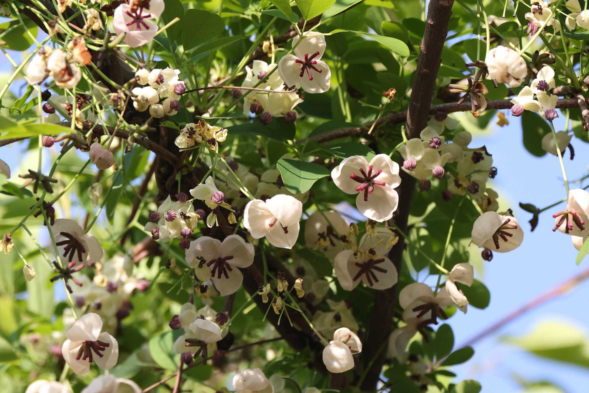 アケビは、雌雄同株ですが、花は雄花と雌花に分かれた雌雄異花です。花期は4~5月で、花言葉は「才能」「唯一の恋」のようです^^