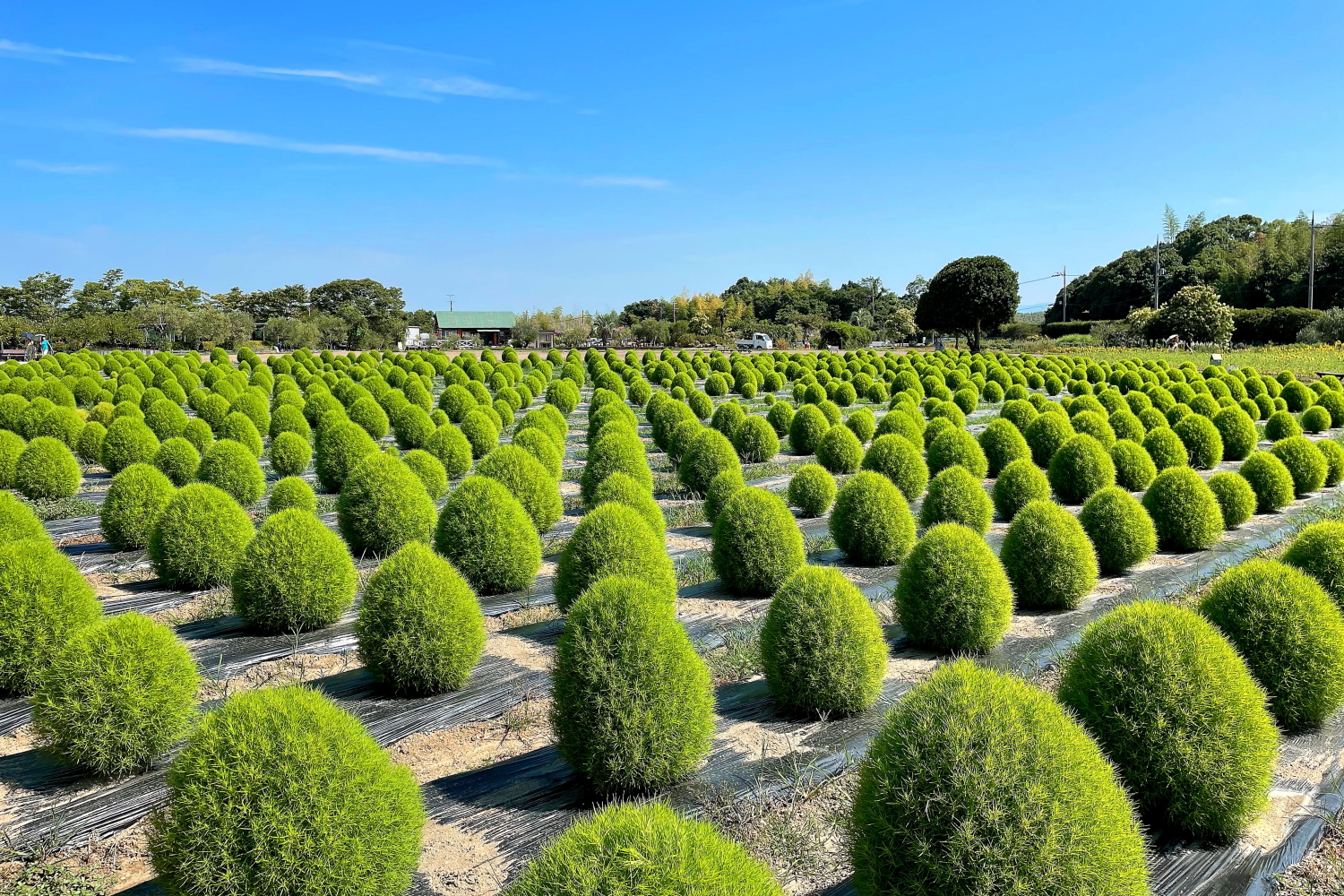 コキアはまだ先ですが、秋にかけて緑コキアから紅葉して赤コキアになり、最後は黄金コキアへと色が移り変わっていくので、コキア畑の季節のグラデーションの変化が楽しめます(^-^)