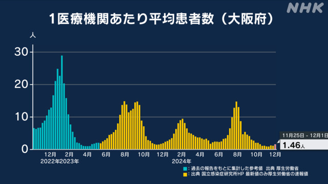 地元大阪府で、先週1週間に報告された新型コロナウイルスの定点医療機関あたりの患者数は、インフルエンザも含め、急な増加傾向に転じました。