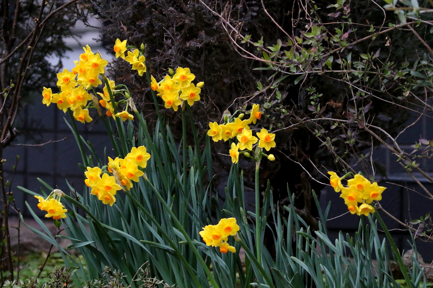 (本日更新1)お庭で、3月初旬に咲き出した「キズイセン」が、例年より半月ほど遅れて、やっとほぼ満開になりました(^-^)