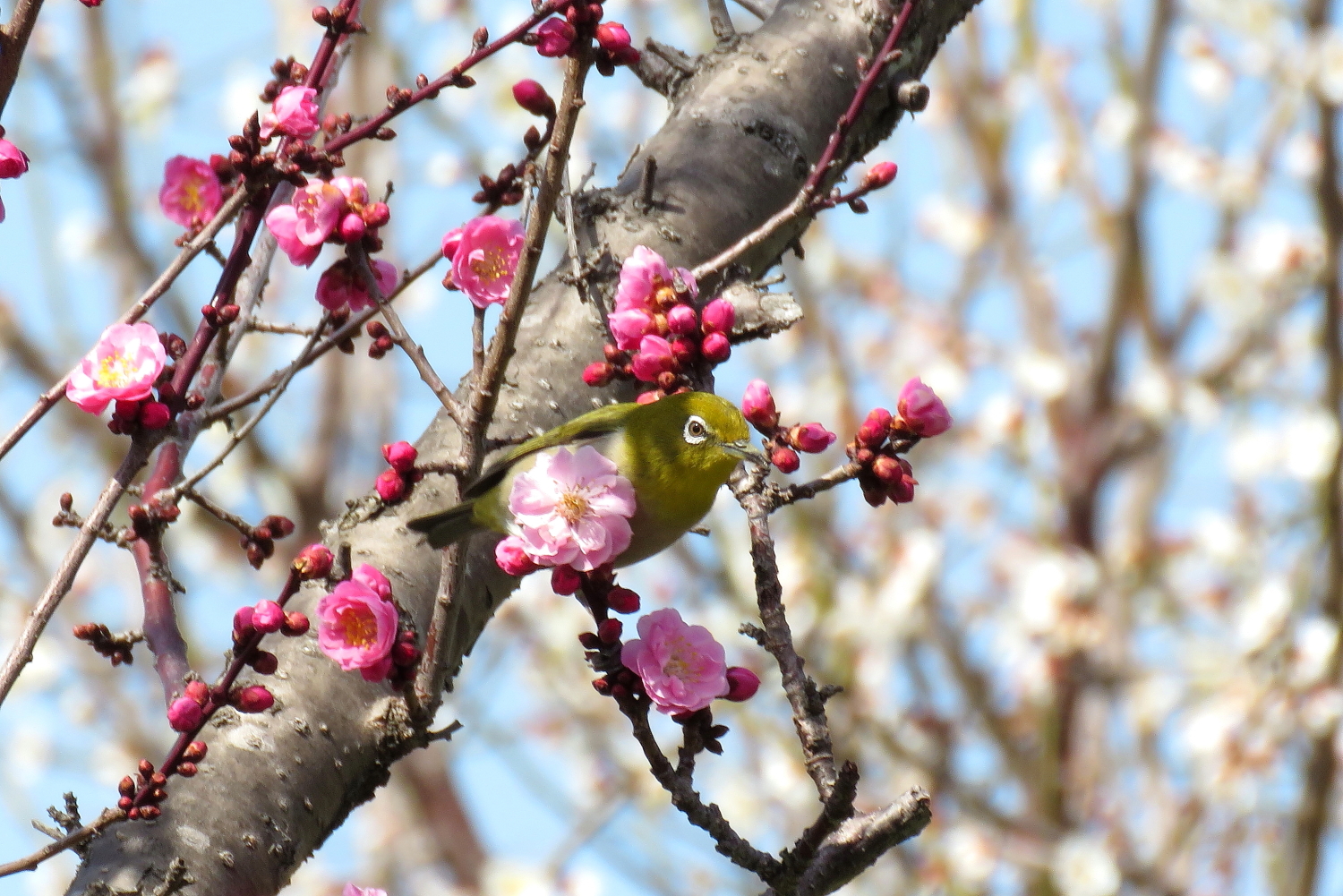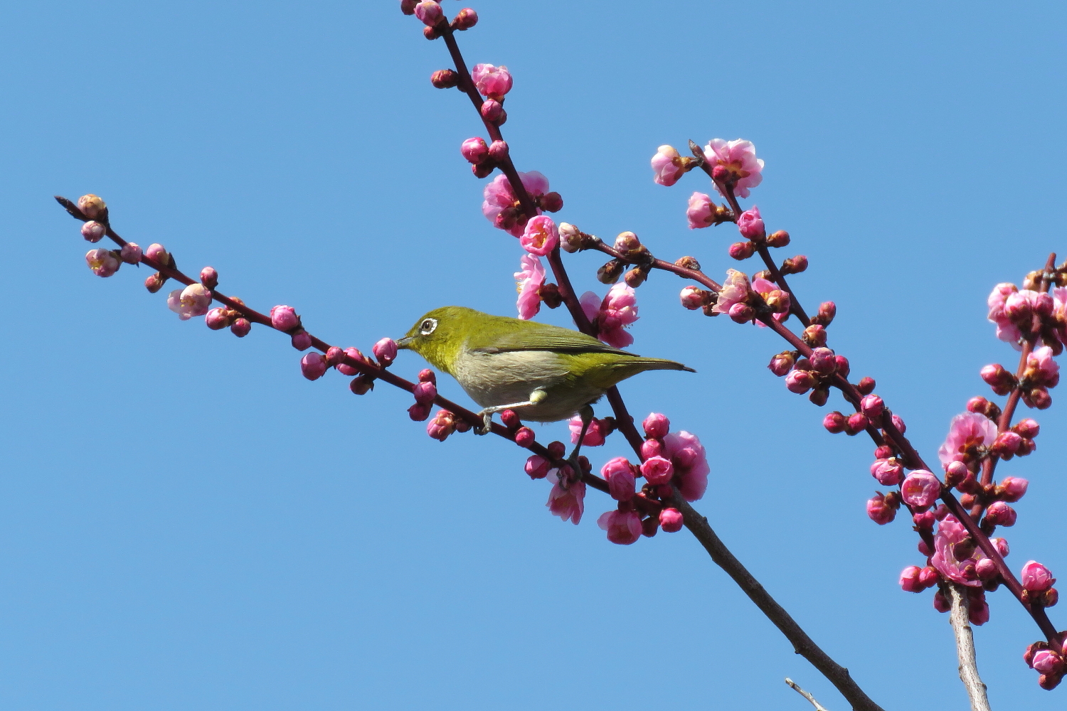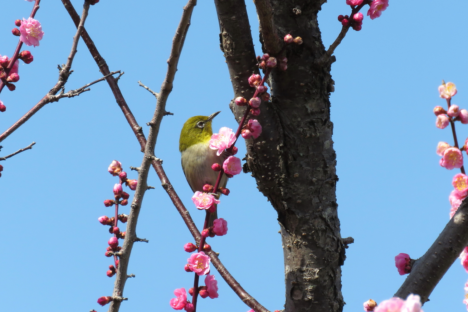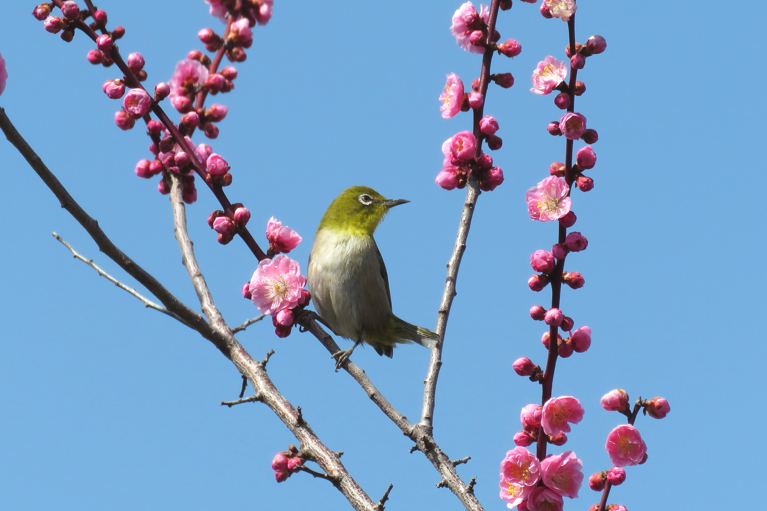 ☆リサイクル環境公園の梅林にやってきた「梅メジロ」