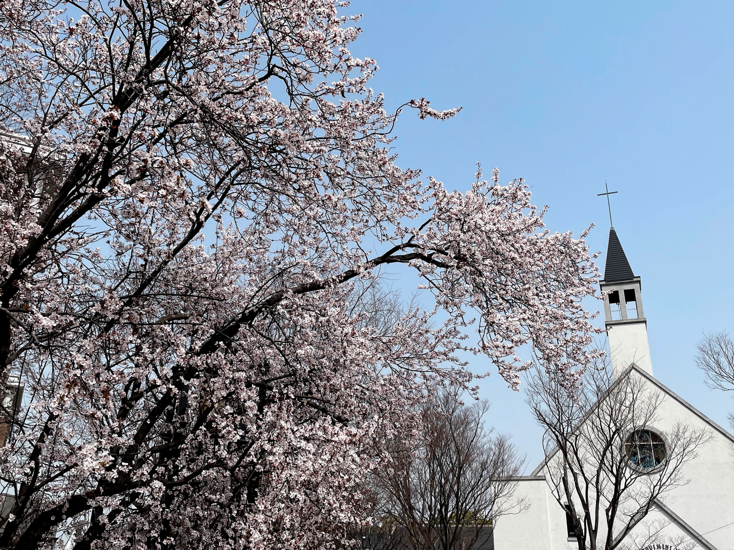 (本日更新2)近所の桃山学院大学で、卒業式(3/20)が終って、ほぼ満開になった珍しい「ベニバスモモ」です(^-^)